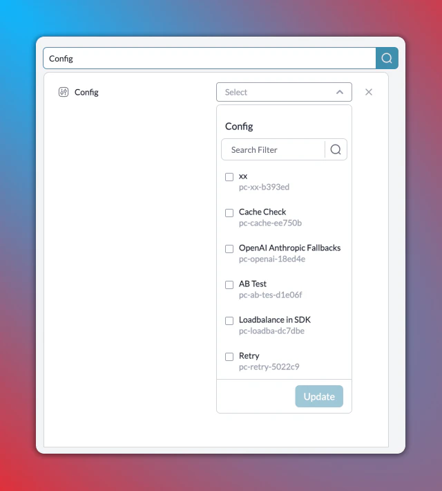 1. On the Logs page, first filter the logs with the specific Config ID where you’ve setup the fallback - this will show all the requests that have been sent with that config.